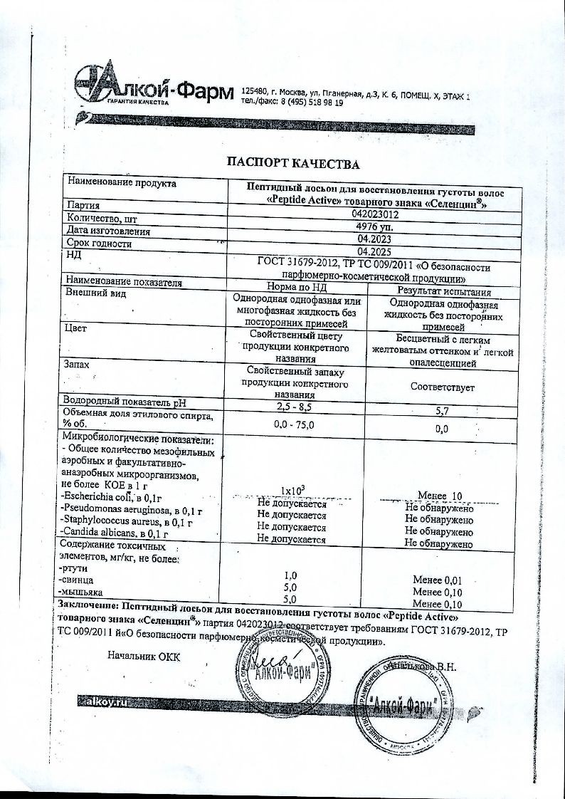 Селенцин Пептид Актив шампунь 200мл пептидный укрепляющий