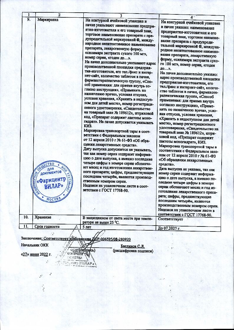 Активным веществом препарата является сухое концентрированное извлечение из плодов расторопши, включенное в клинико-фармакологическую группу растительных гепатопротекторных средств. Вспомогательный состав таблеток представлен такими веществами: