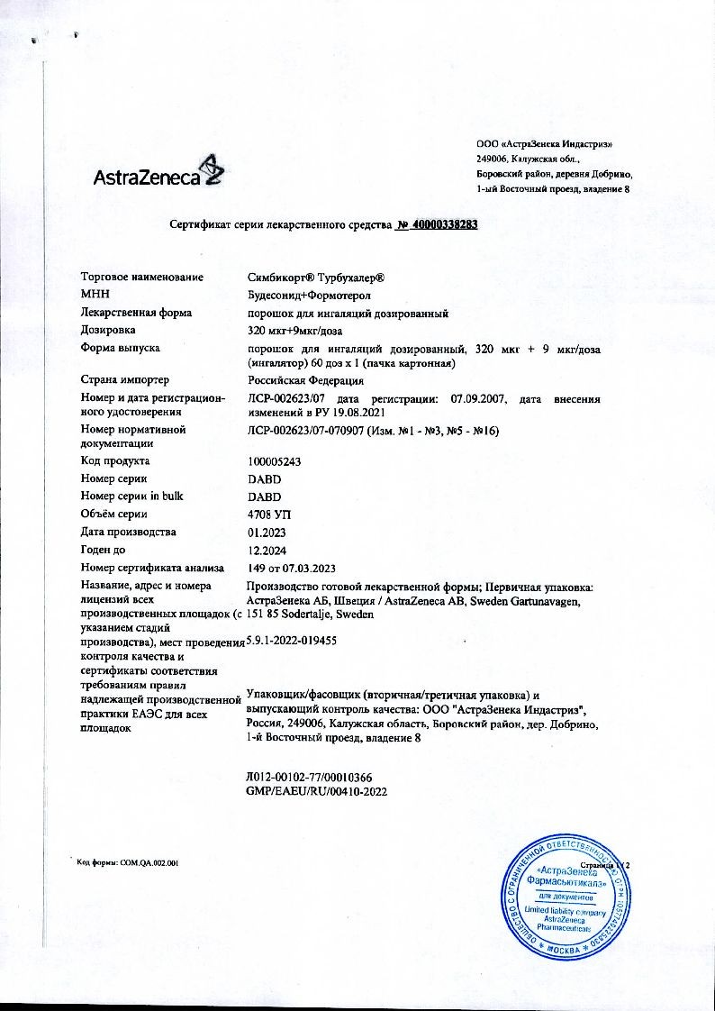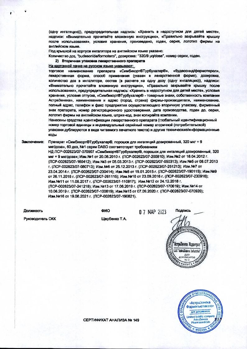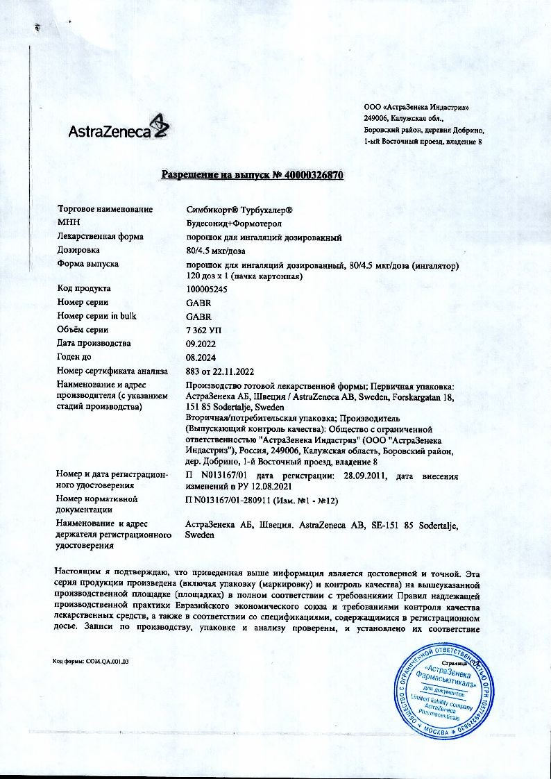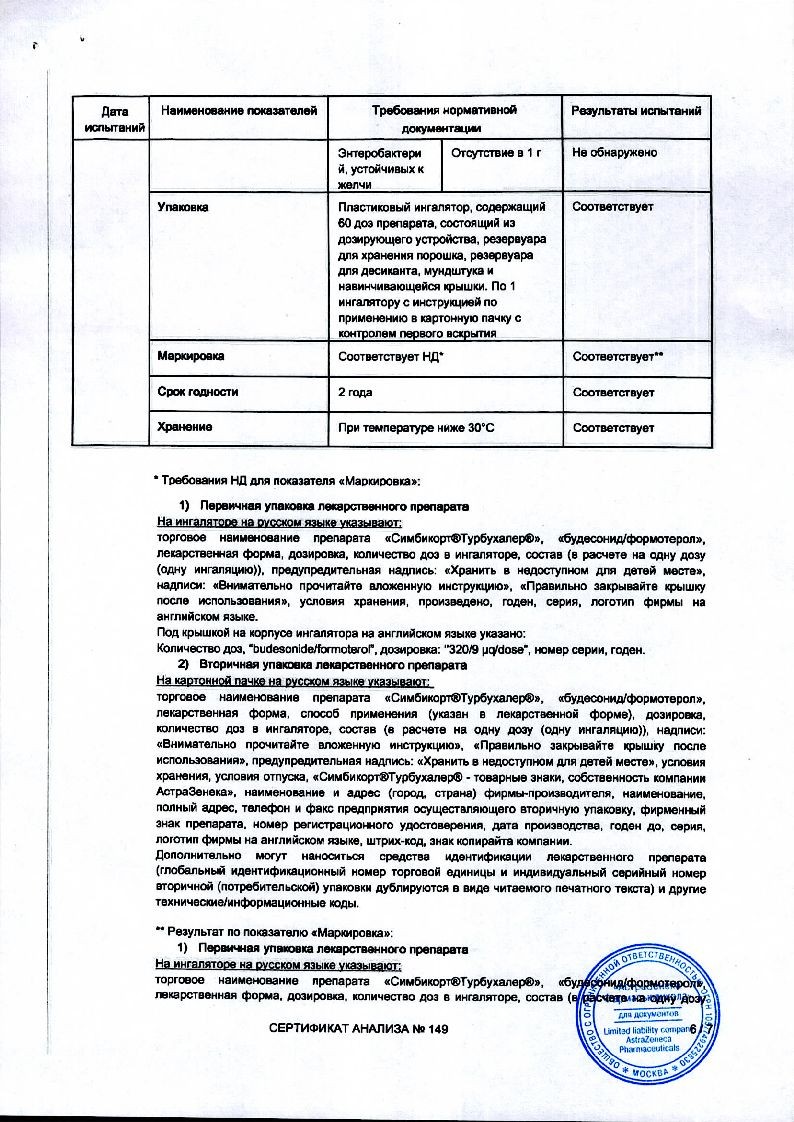 Средство в любой форме обязательно сопровождается инструкцией по применению Симбикорта на бумажном носителе.