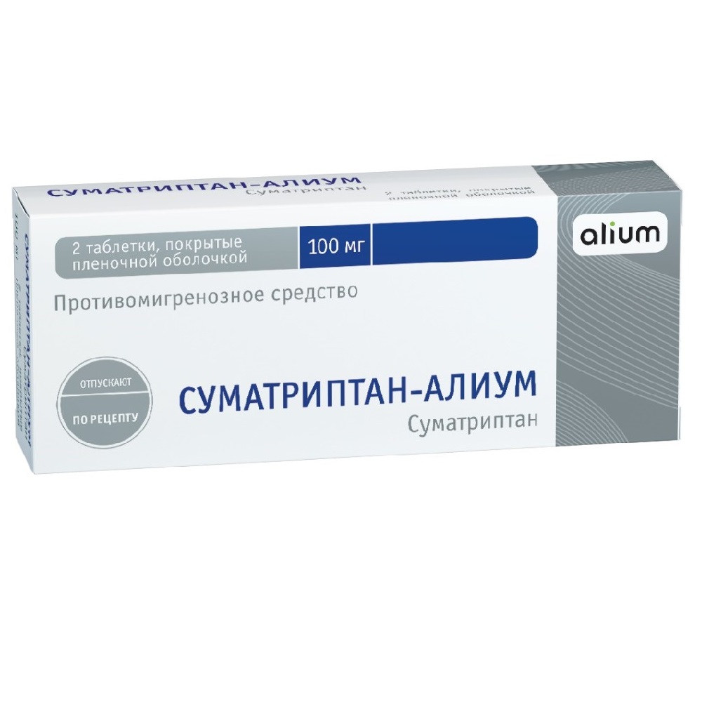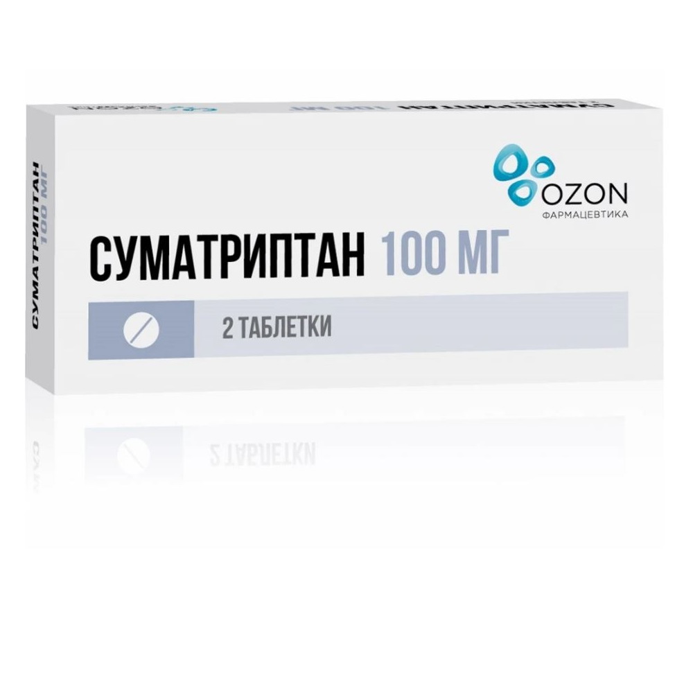 Суматриптан 100 мг 2 шт таблетки покрытые пленочной оболочкой