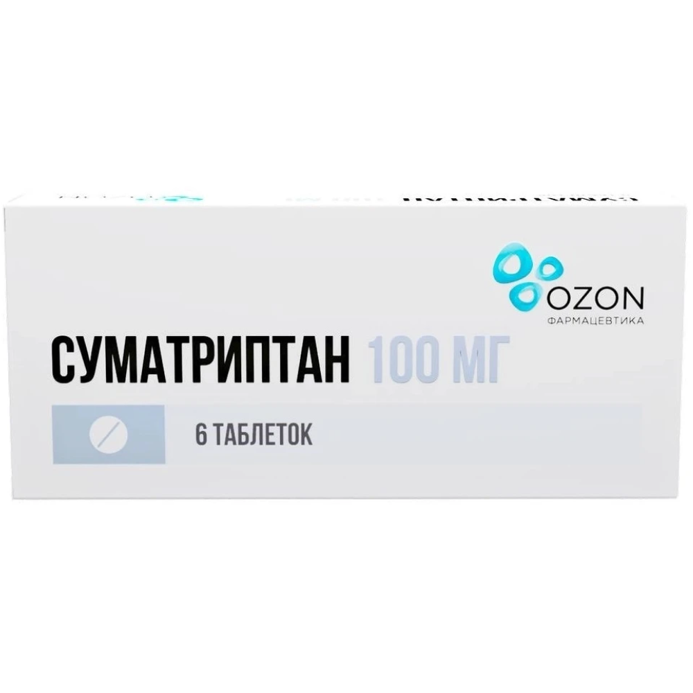 В 100 мг лекарства (в одной таблетке) содержится активное действующее вещество суматриптан 100 мг.