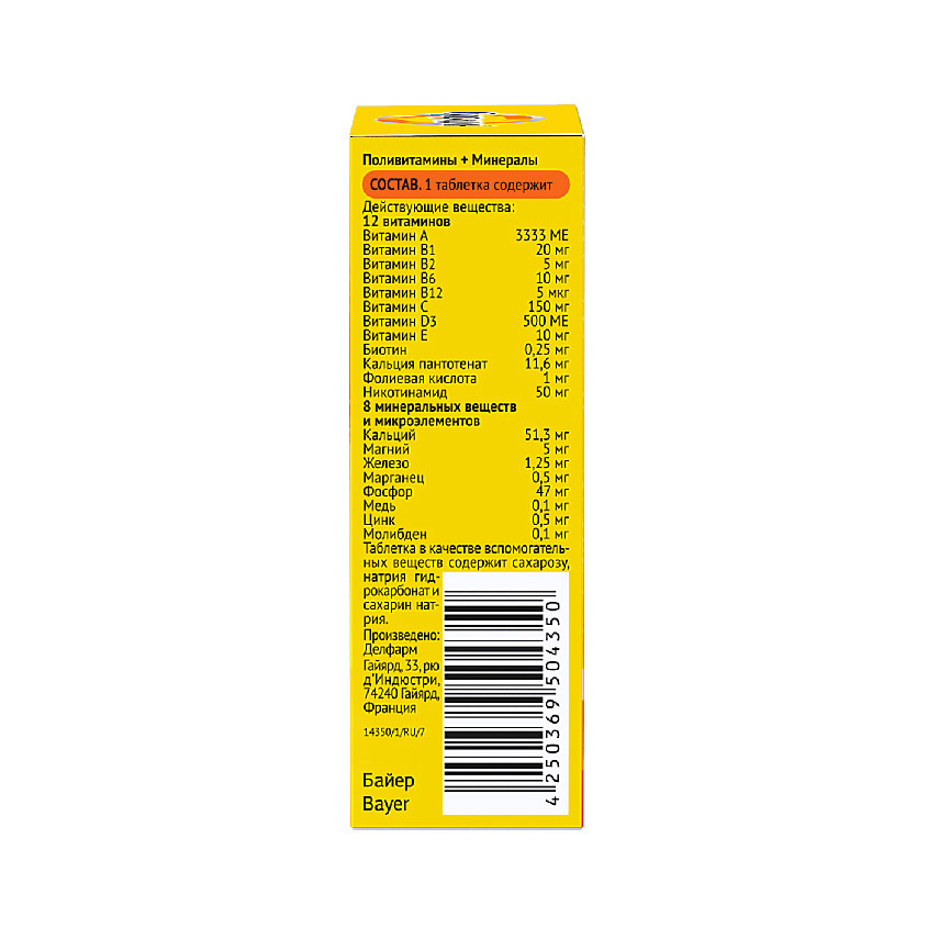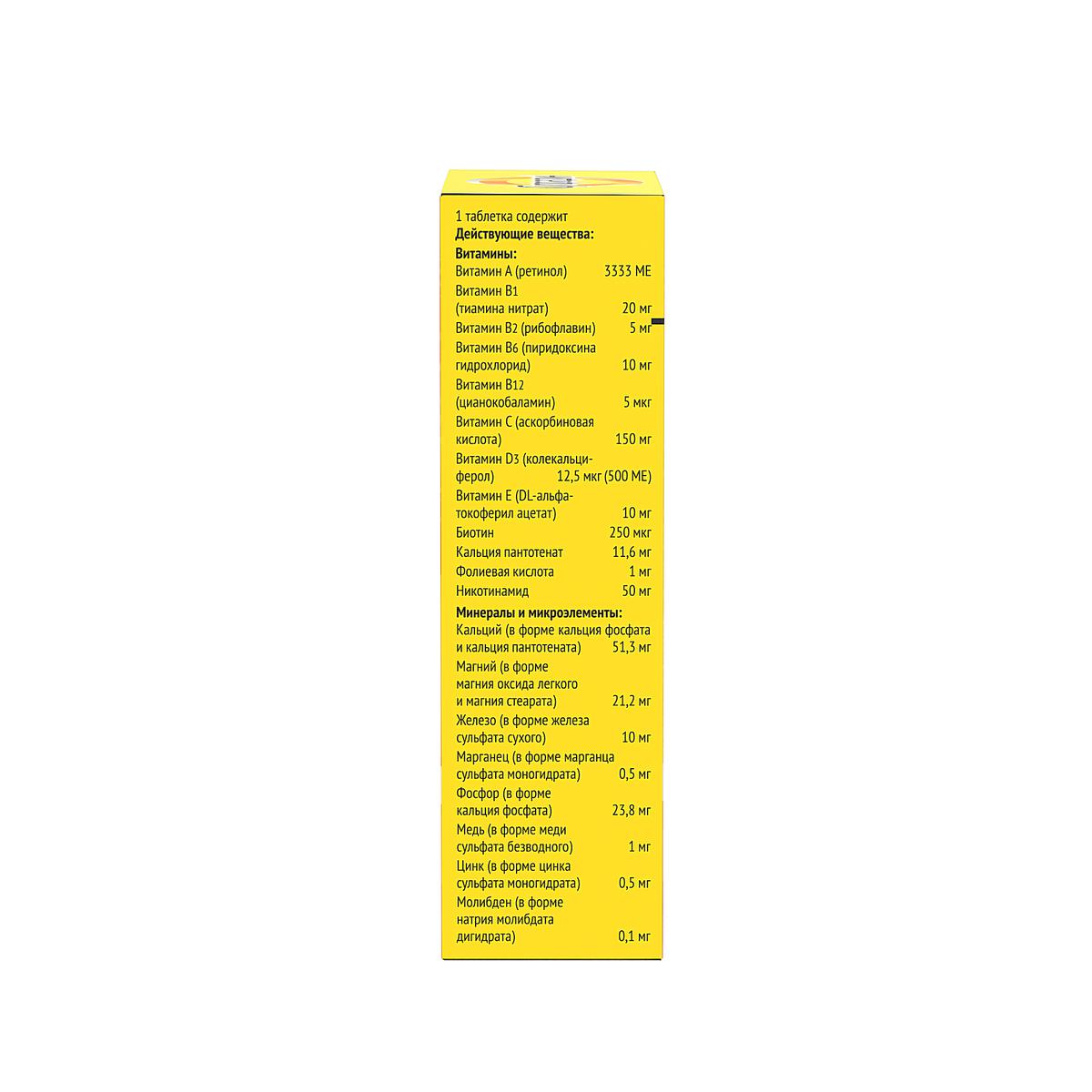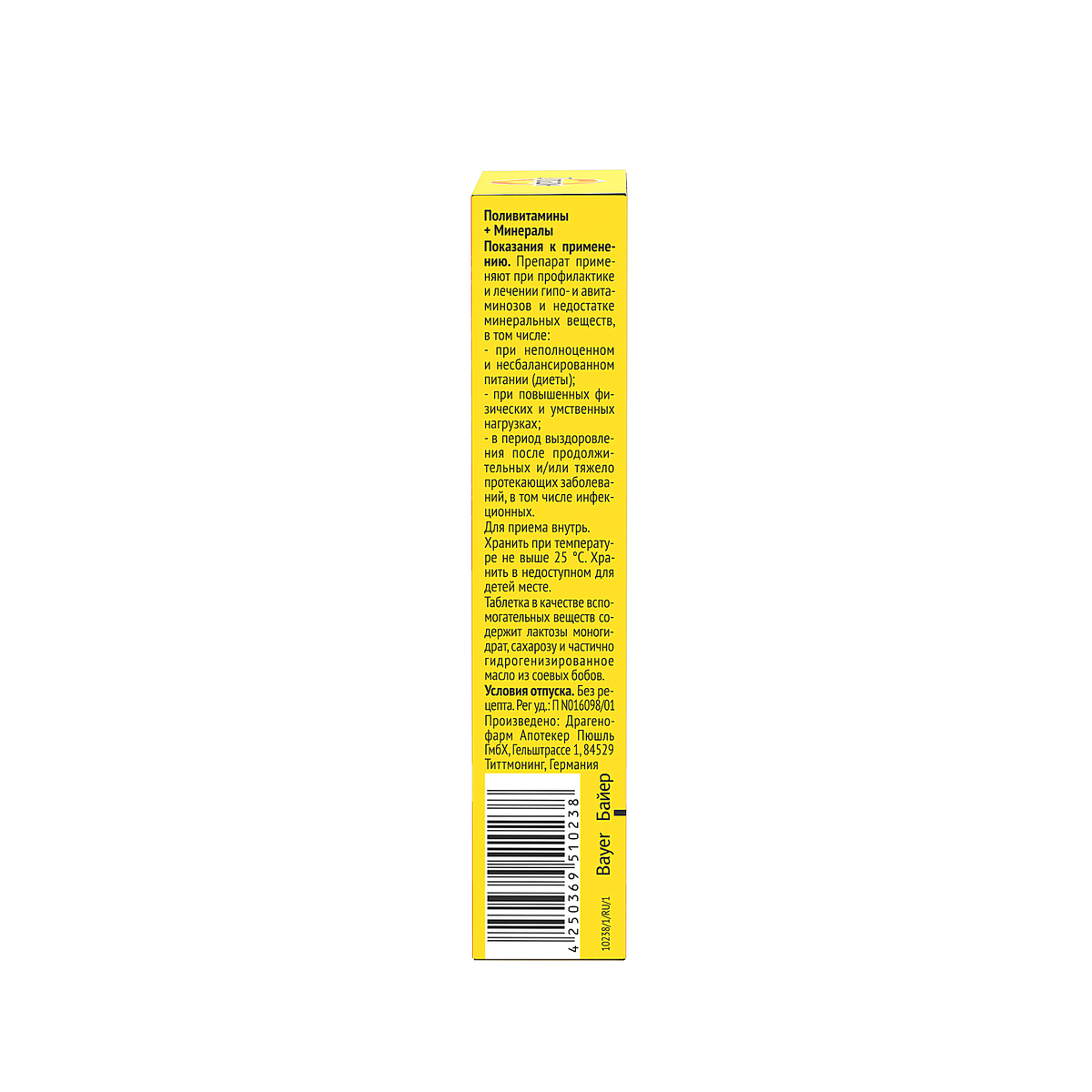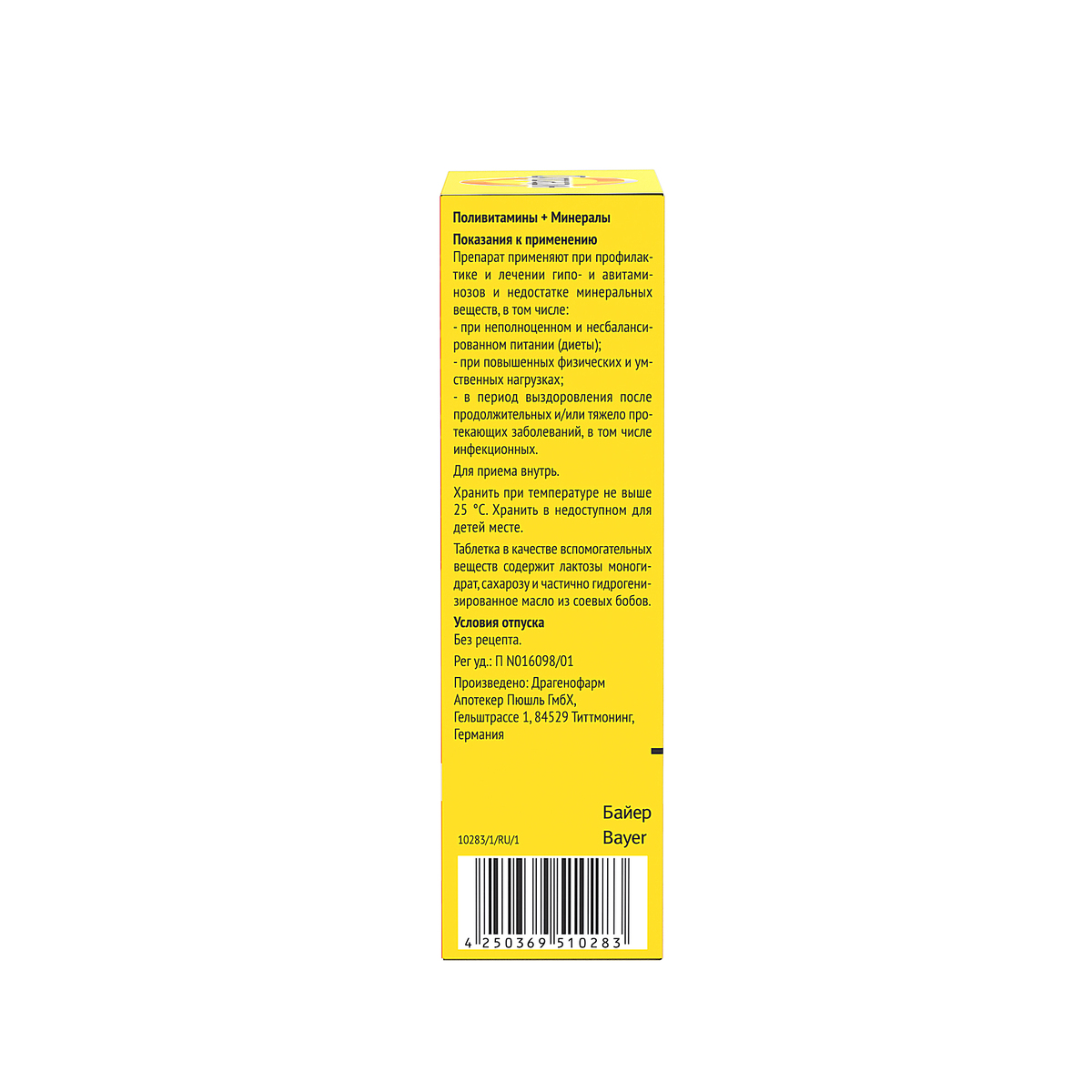 Супрадин выпускается швейцарской фармацевтической компанией Байер в форме продолговатых коричнево-красных таблеток с кишечнорастворимой оболочкой. Они расфасованы в пластиковые флаконы с навинчивающейся крышкой. Каждый вложен в картонную коробку вместе с подробной инструкцией по применению. Активный состав витаминно-минерального средства сформирован из таких ингредиентов: