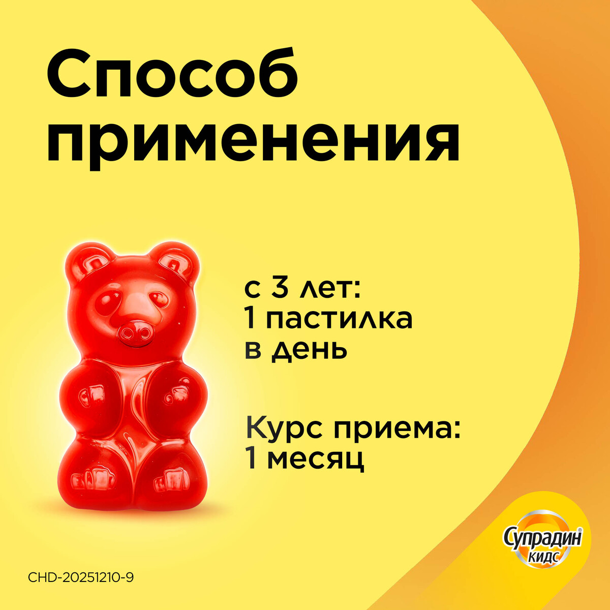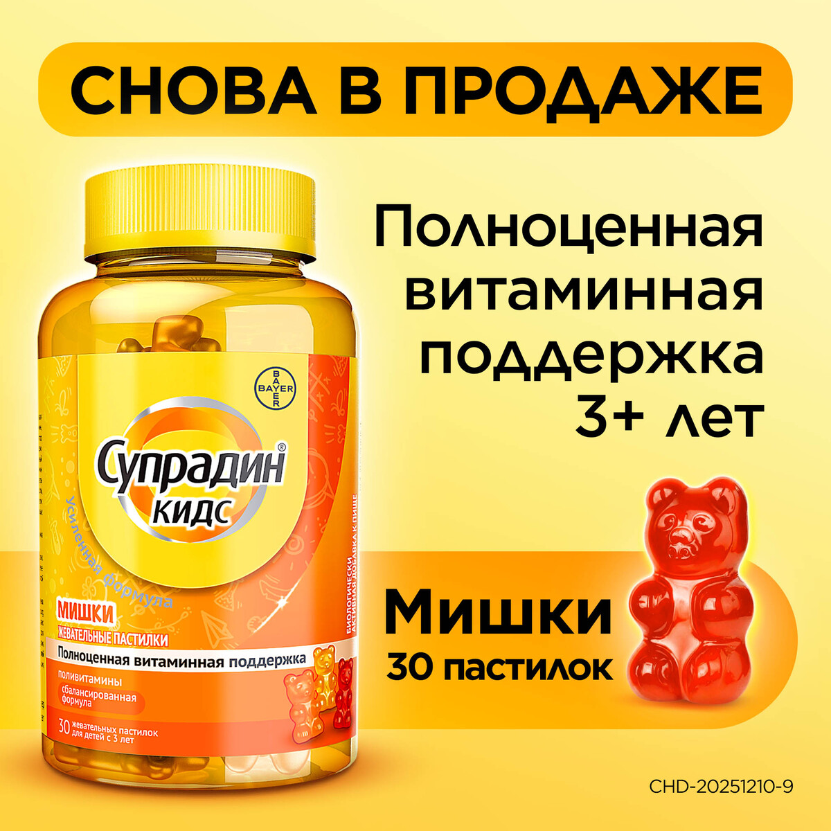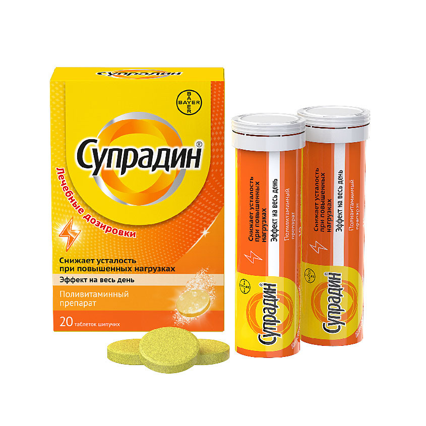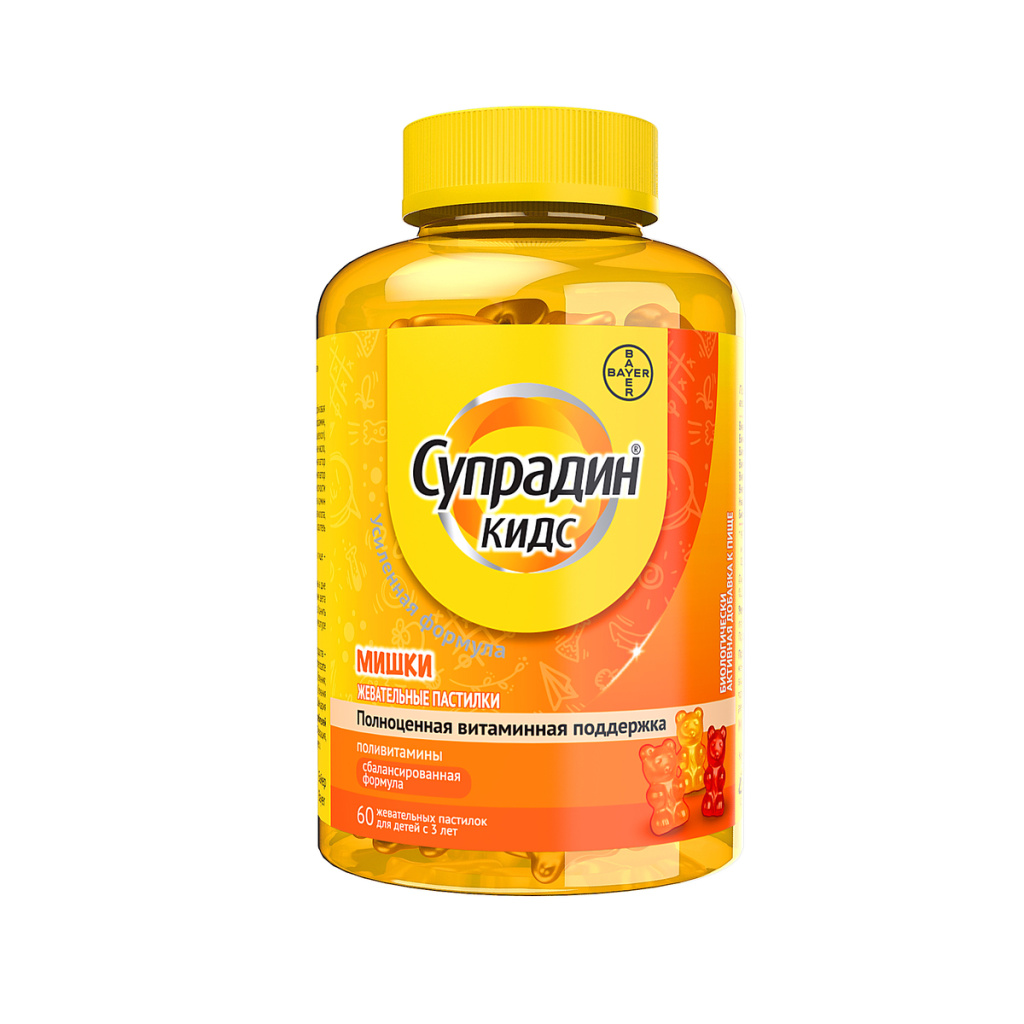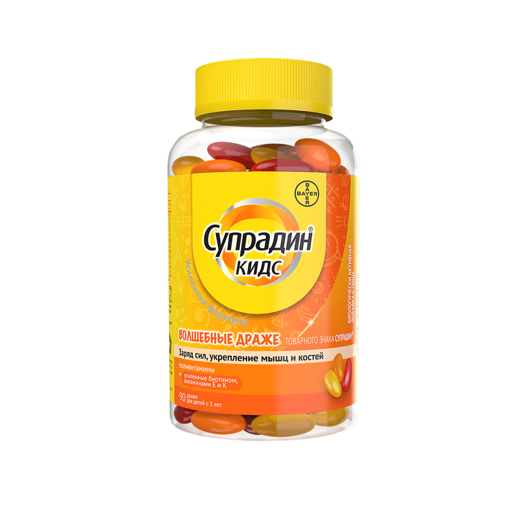 Недавно аптечный ассортимент пополнился Супрадином для приготовления вкусного шипучего напитка с ароматом лимона. А также фармакологической новинкой — жевательными пастилками для малышей. Их вкус улучшен добавлением натуральных красителей и ароматизаторов, а также пищевого желатина. Одной пастилки вполне достаточно, чтобы удовлетворить суточную потребность детского организма в витаминах, макро- и микроэлементах.