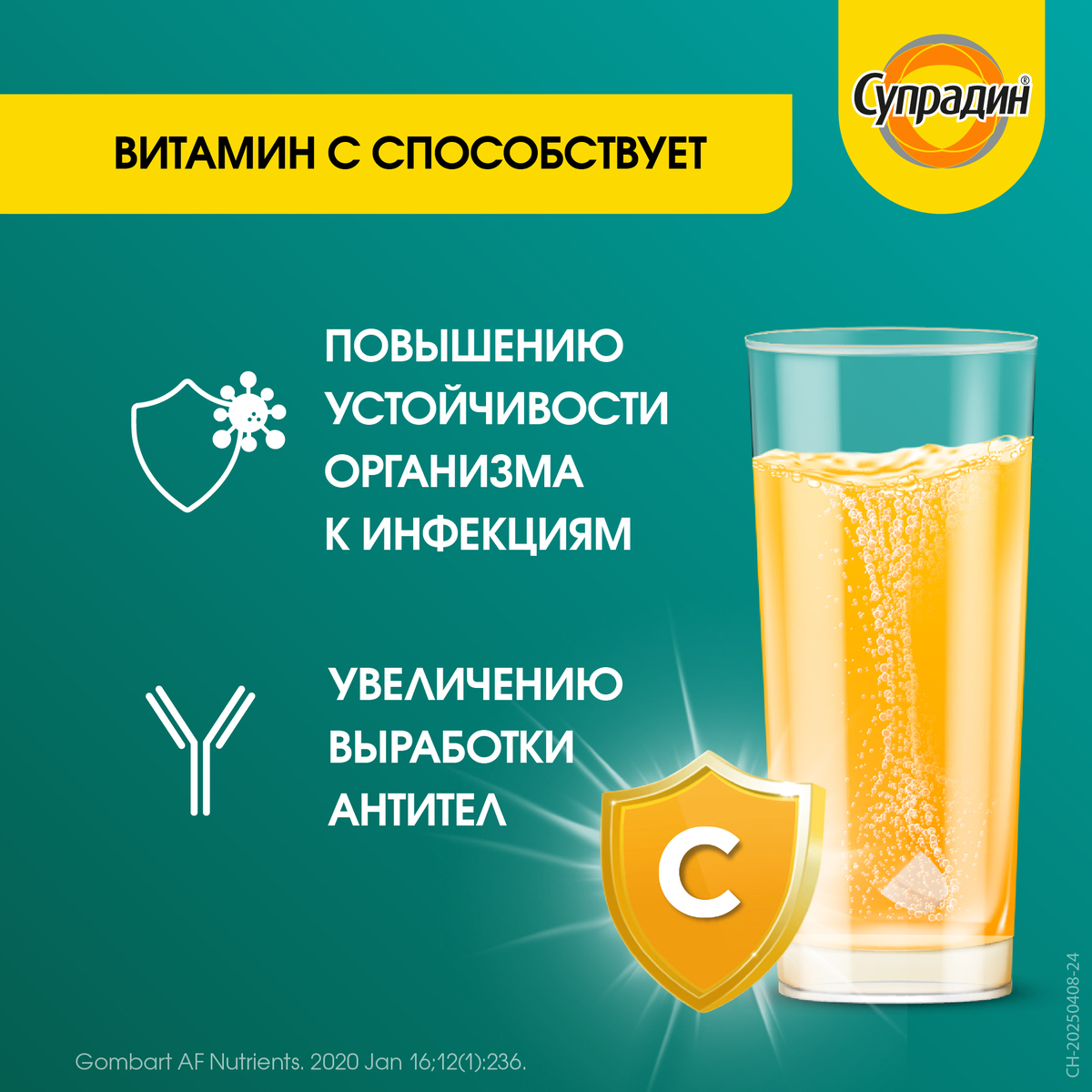 Дополнительный состав Супрадина, включая оболочку, сформирован из микрокристаллической целлюлозы, лактозы моногидрат, маннитола, сахарозы, повидона, кросповидона, магния стеарата, талька, сухого спрея акации, парафинов, крахмала рисового, титана диоксида, кантаксантина. Вспомогательные ингредиенты способствуют постепенному высвобождению витаминов и минералов, чем и объясняется пролонгированное (длительное) действие препарата.