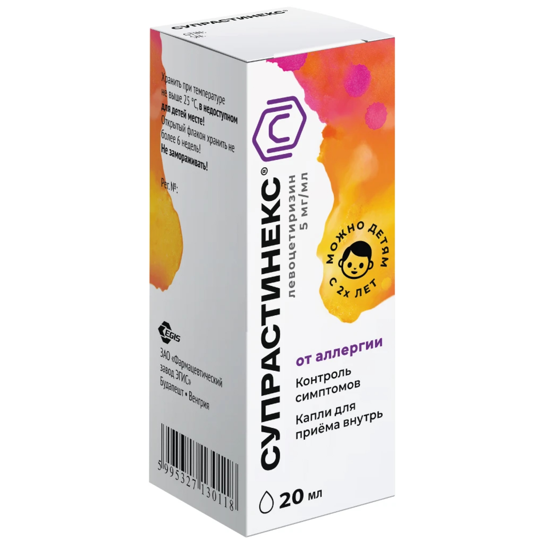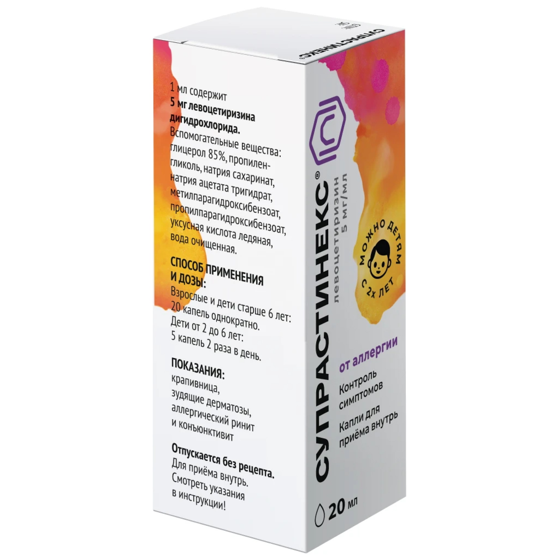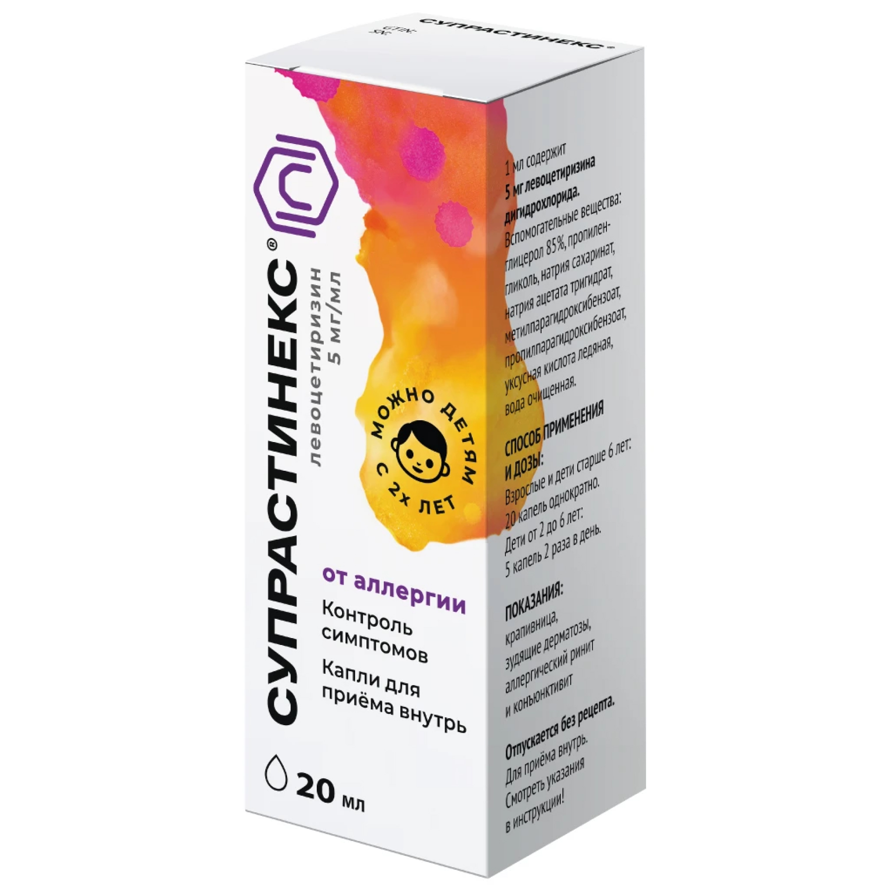 2-6 лет: 2.5 мг, разделенные на два приема (по пять капель утром и вечером);