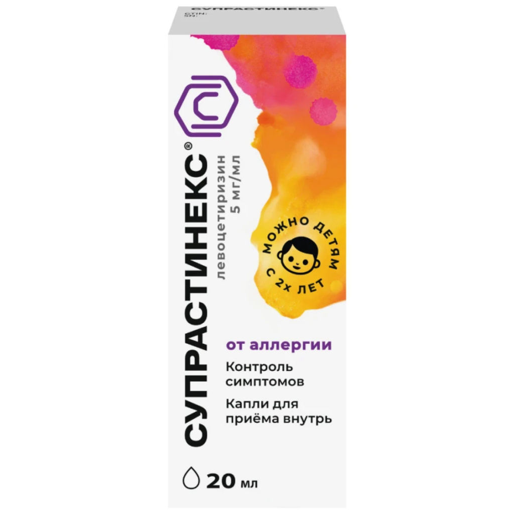 Прием Супрастинекса препятствует развитию аллергической реакции, снижает выраженность ее симптоматики. Под воздействием левоцетиризина начинают рассасываться воспалительные отеки, исчезает зуд любой локализации. В отличие от предшественников для препарата не характерна антихолинергическая и антисеротонинергическая активность. А также седативное действие, свойственное антигистаминным средствам первых поколений.