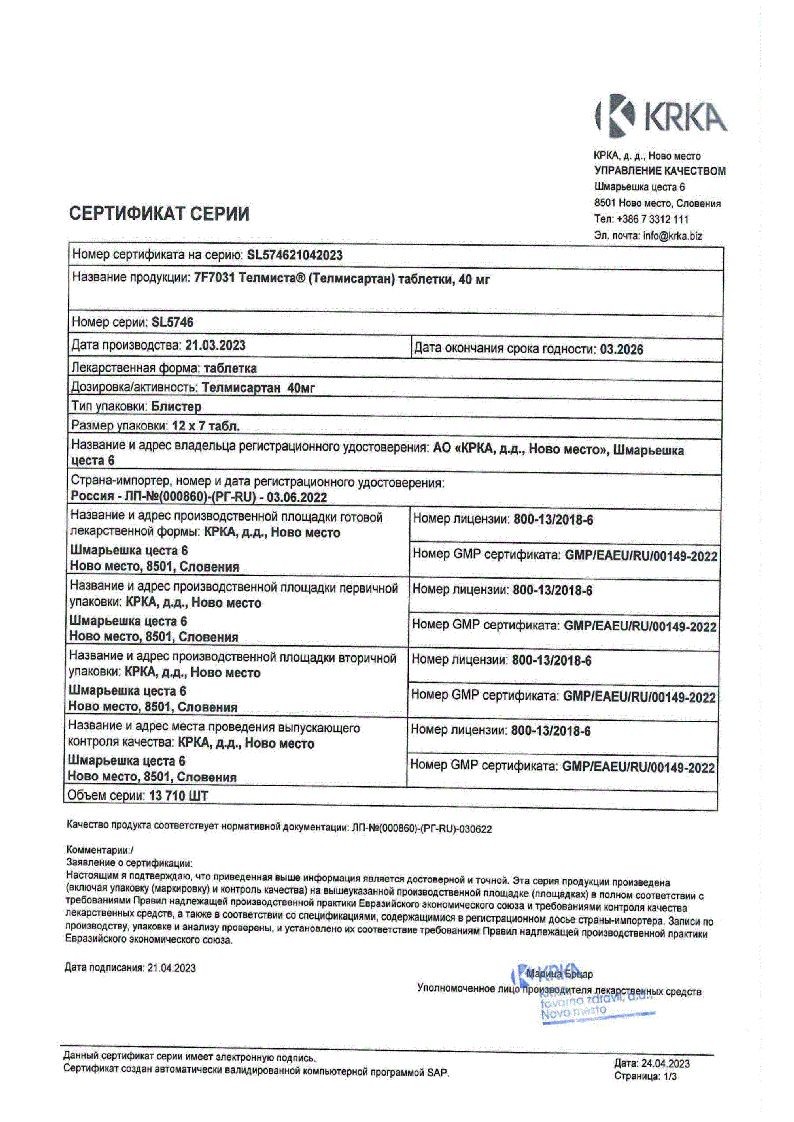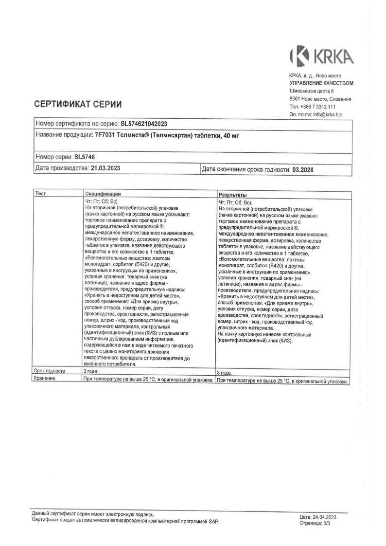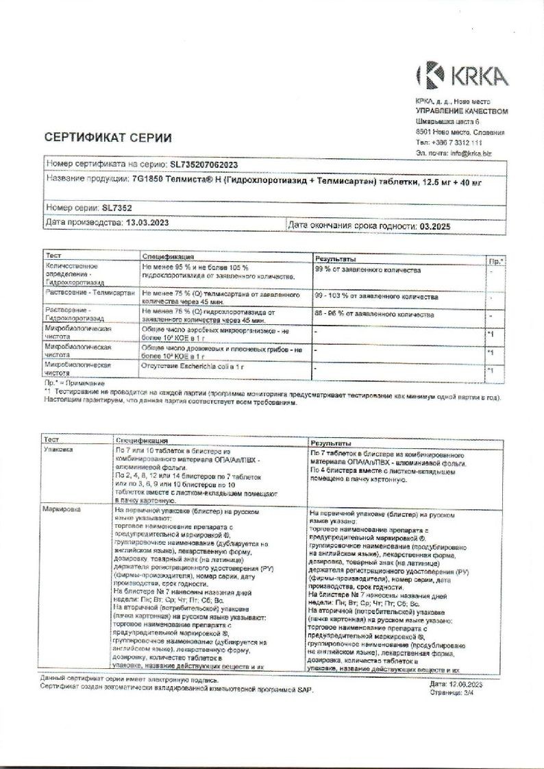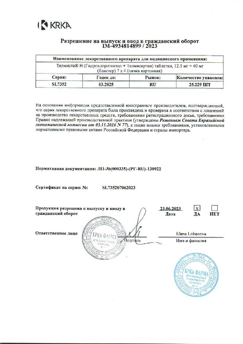 Купить Телмиста в аптеках Москвы, области и других городов можно только по рецепту врача. Цену Телмиста уточняйте у продавца.