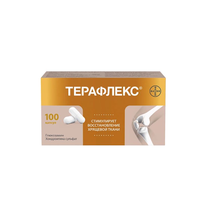 Глюкозамин, Ибупрофен, Хондроитина Сульфат, Хондроитин сульфат, Мелоксикам, Хондроитина сульфат натрияТерафлекс выпускается американской фармакологической компанией Sagmel в виде продолговатых капсул с кишечнорастворимой оболочкой, наполненных однородным белым порошком. Они расфасованы в оригинальные пластиковые флаконы. Вторичная упаковка препарата — картонная ламинированная коробка. Помимо капсул в ней находится подробная инструкция по применению.