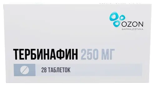 В контурной ячейковой упаковке, изготовленной из ПВХ и алюминиевой печатной лакированной фольги содержится 10, а также 7, 5, 4 или 3 таблетки. Препарат также фасуется в банки, специально изготавливаемые для лекарств – с крышками контроля первого вскрытия. В банке – 100 либо 50, также 10, 20, 21, 28, 30, 40 таблеток. Банка помещается в упаковку из картона вместе с инструкцией по применению Терфинафина.