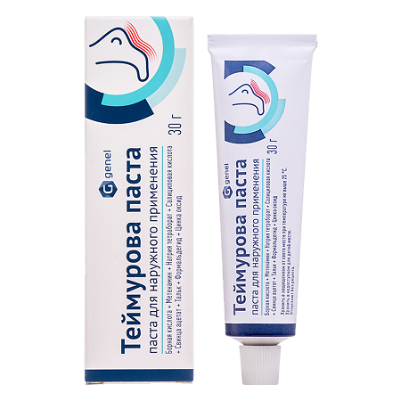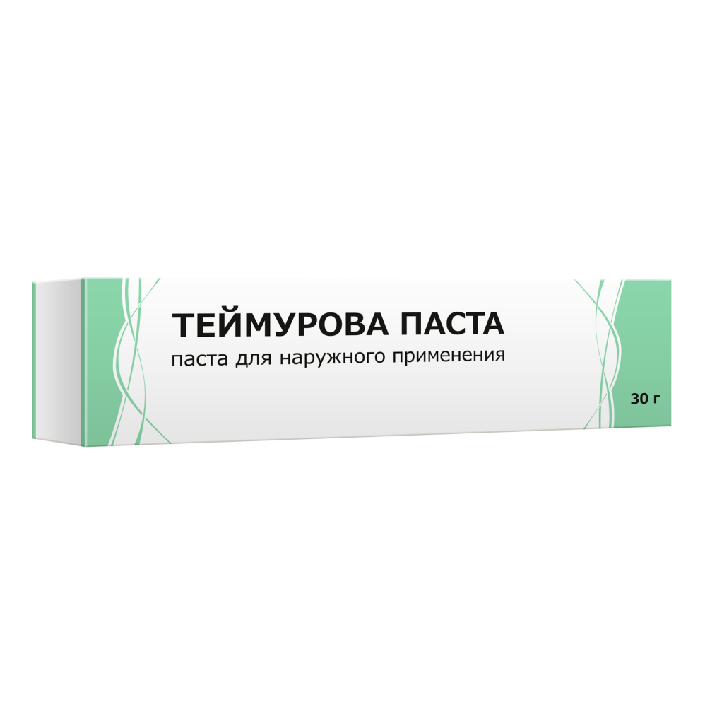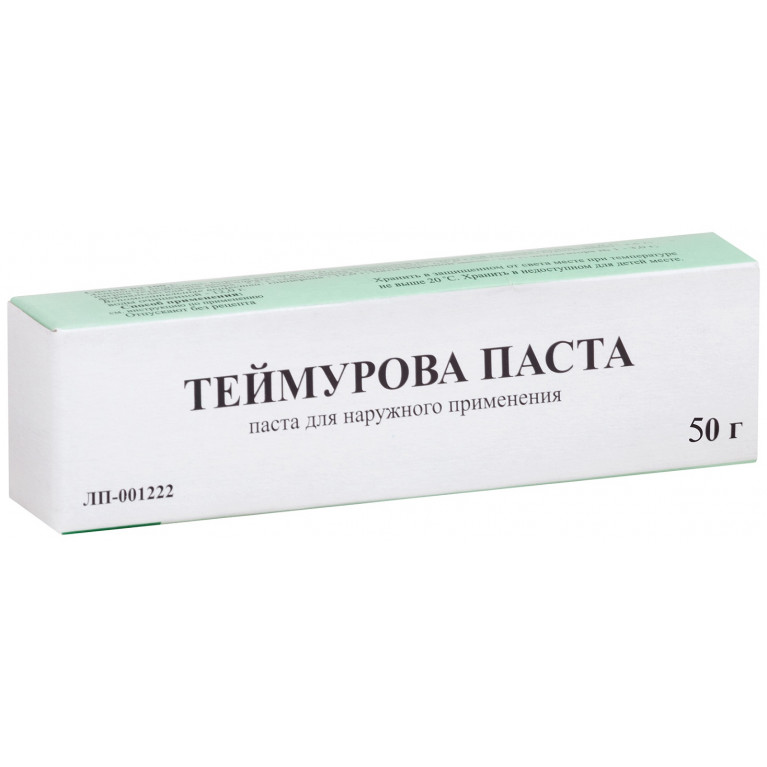 В роли вспомогательных компонентов выступают только дистиллированная вода, добавленная для создания основы пасты, и эмульгатор, обеспечивающий ее длительный срок хранения. Вторичной упаковкой Теймурова пасты является картонная коробка, внутри которой помимо баночки или тубы находится подробная инструкция по применению.