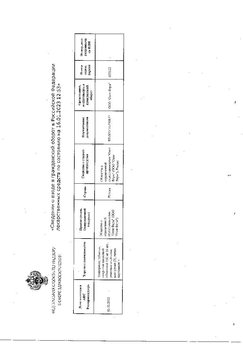 1 таблетка содержит: