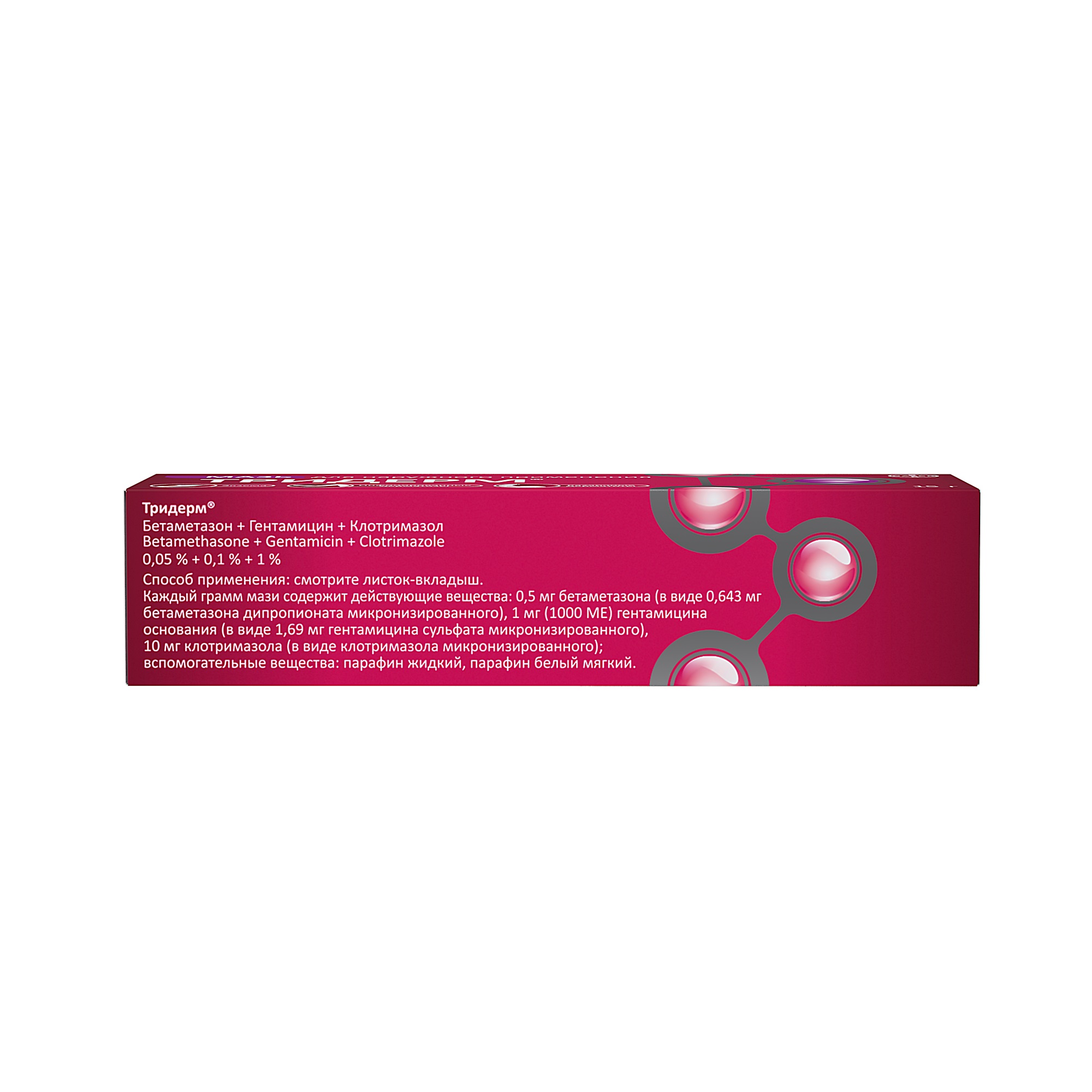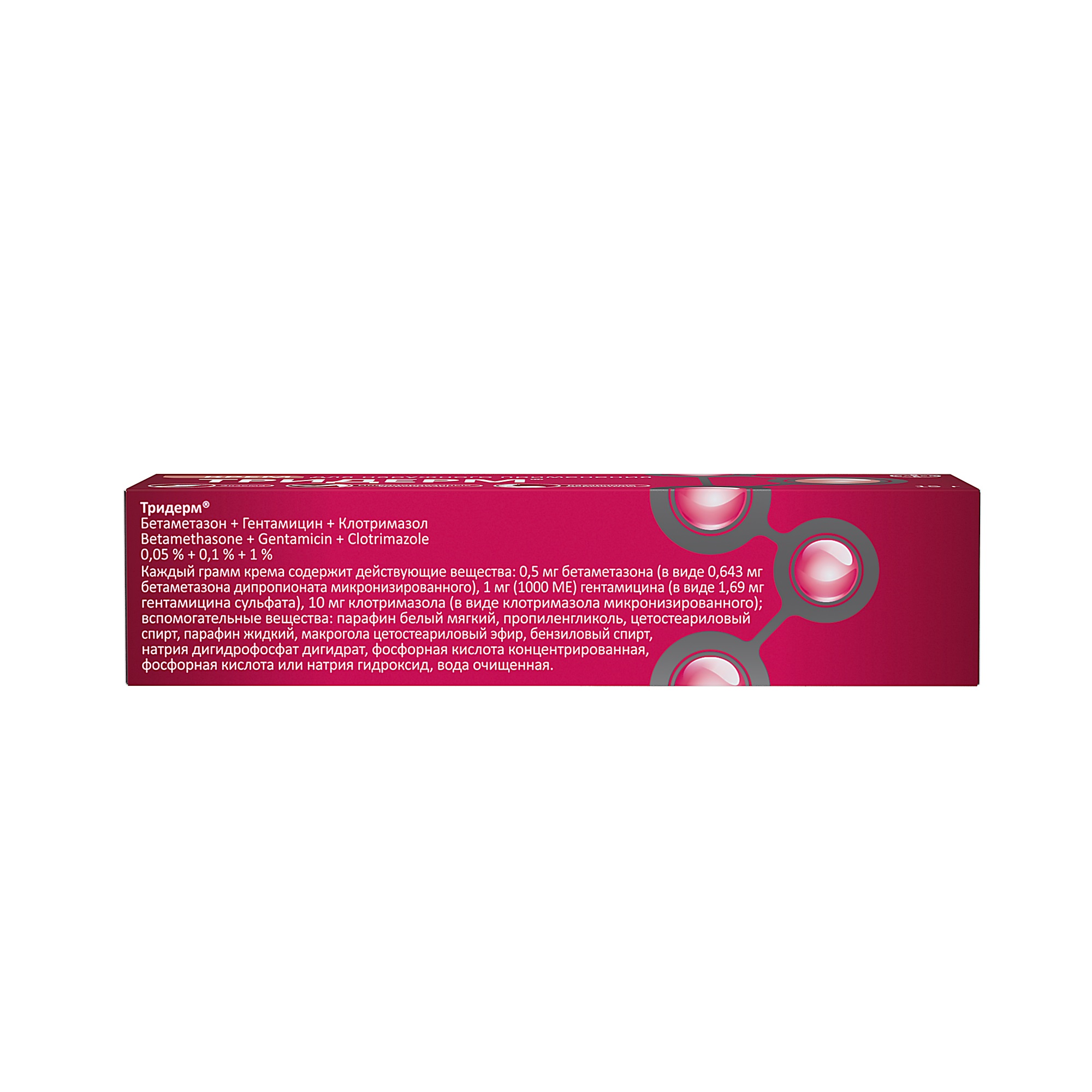 Средства из линейки Тридерм разработаны специалистами бельгийской фармацевтической компании Schering-Plough Labo N.V. Мазь представляет собой вязкую прозрачную массу с легким желтоватым оттенком. Крем белый, с плотной консистенцией. Производитель расфасовывает их в алюминиевые тубы с навинчивающимся колпачком. В картонной коробке находится также подробная инструкция по применению.