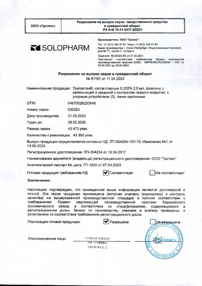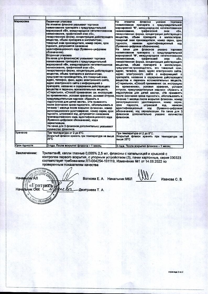 Цена Трилактана указана на сайте в карточке товара. Покупать препарат для глаз можно исключительно по рецепту.