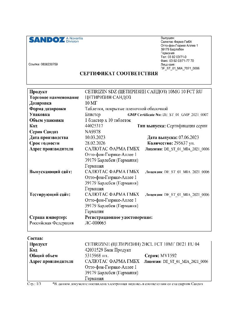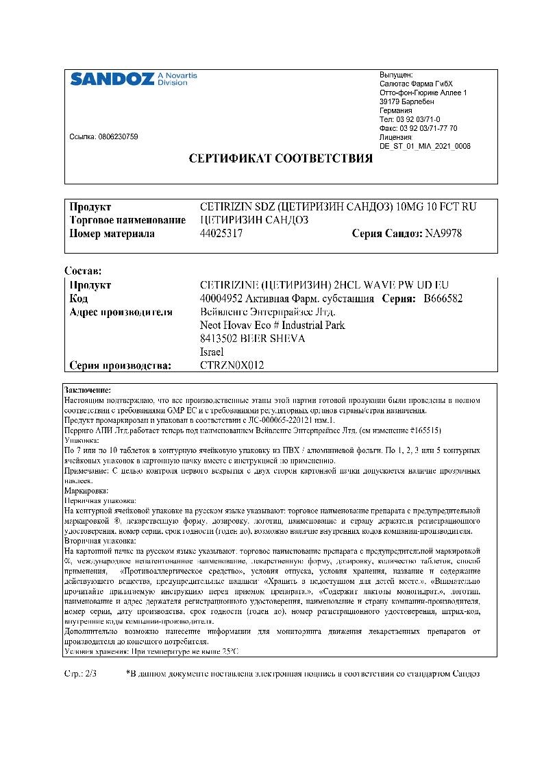 Срок годности препарата — 3 года. Хранить его следует при комнатной температуре в защищенном от солнечных лучей месте. На порчу сиропа и раствора указывают изменение цвета, выпадение осадка на дно флакона. К месту хранения Цетиризина доступ маленьких детей должен быть ограничен.