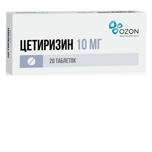 Цетиризин таблетки покрытые пленочной оболочкой 10мг №20