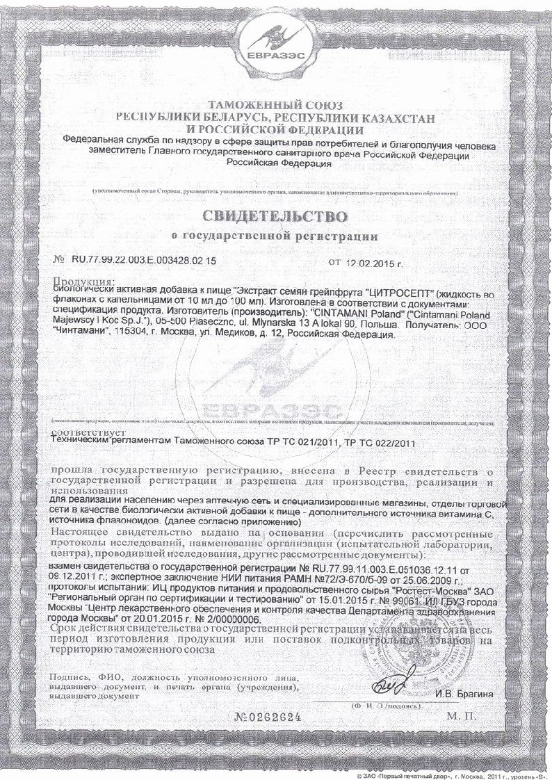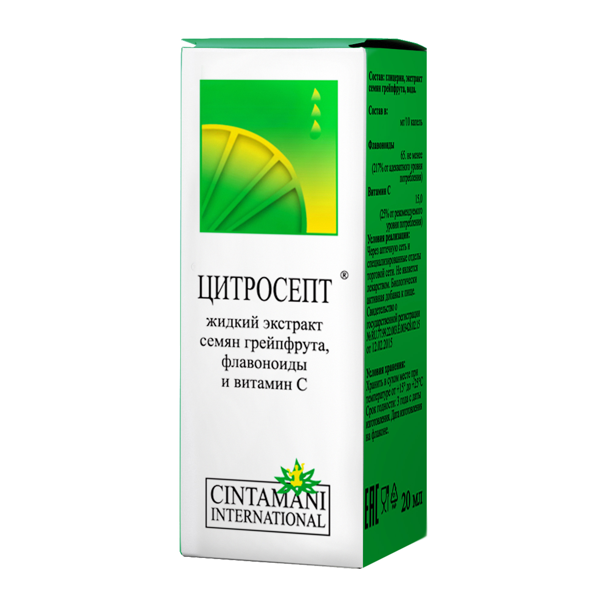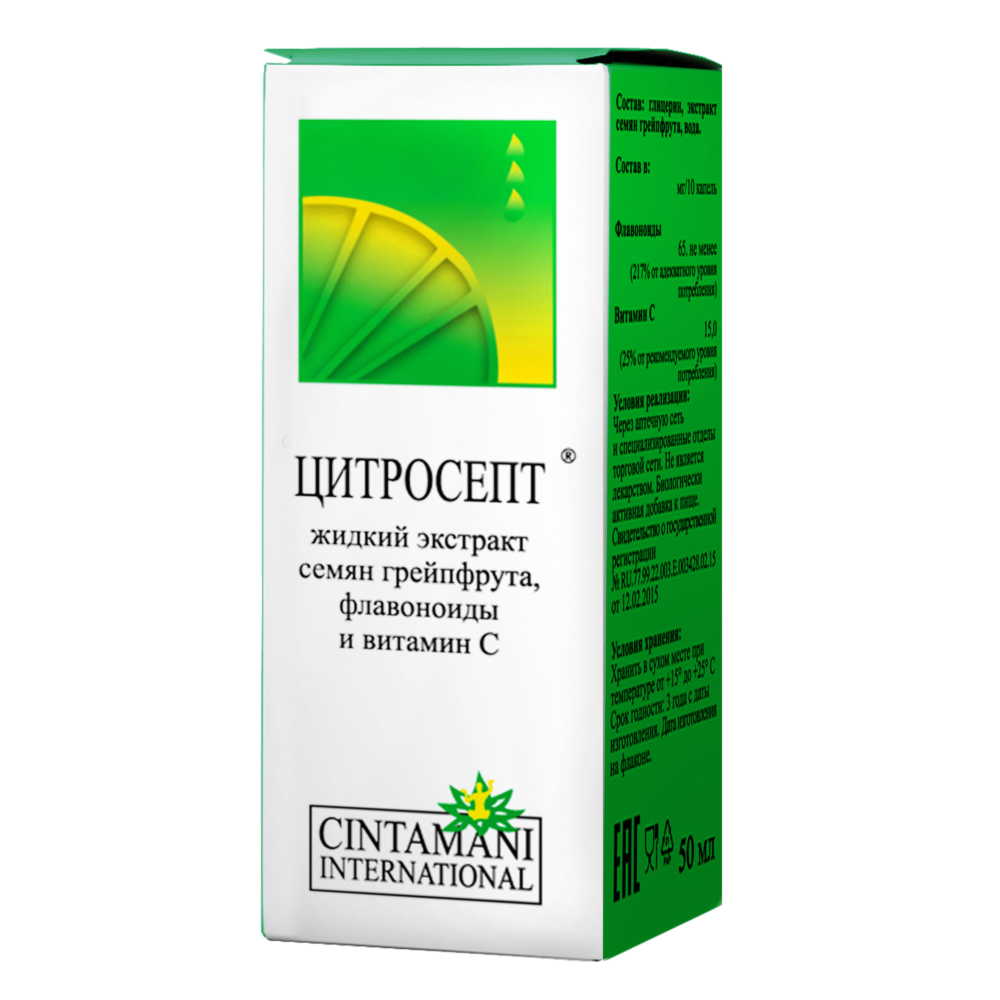 Цитросепт выпускается польской фармацевтической компанией Chintamani International в виде вязкого раствора с горьковатым вкусом и выраженным цитрусовым ароматом. Он помещен во флаконы из темного стекла, которые вложены в компактные картонные коробки вместе с подробными инструкциями по применению. Активный состав препарата представлен биофлавоноидами и аскорбиновой кислотой. А для формирования вспомогательного производитель воспользовался такими ингредиентами: