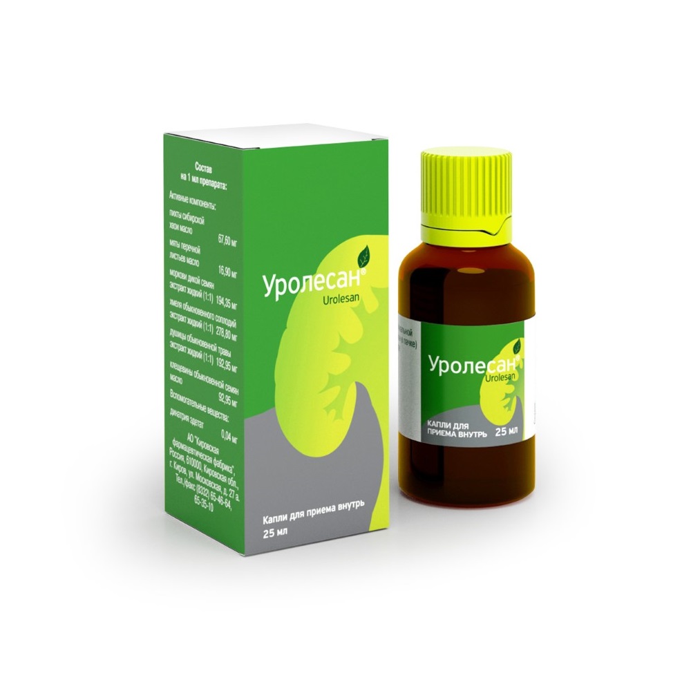 В аптечном ассортименте есть и Уролесан в виде зеленовато-коричневых капель с запахом лекарственных растений, расфасованных во флаконы из темного стекла. Помимо активных компонентов их состав представлен такими вспомогательными веществами: