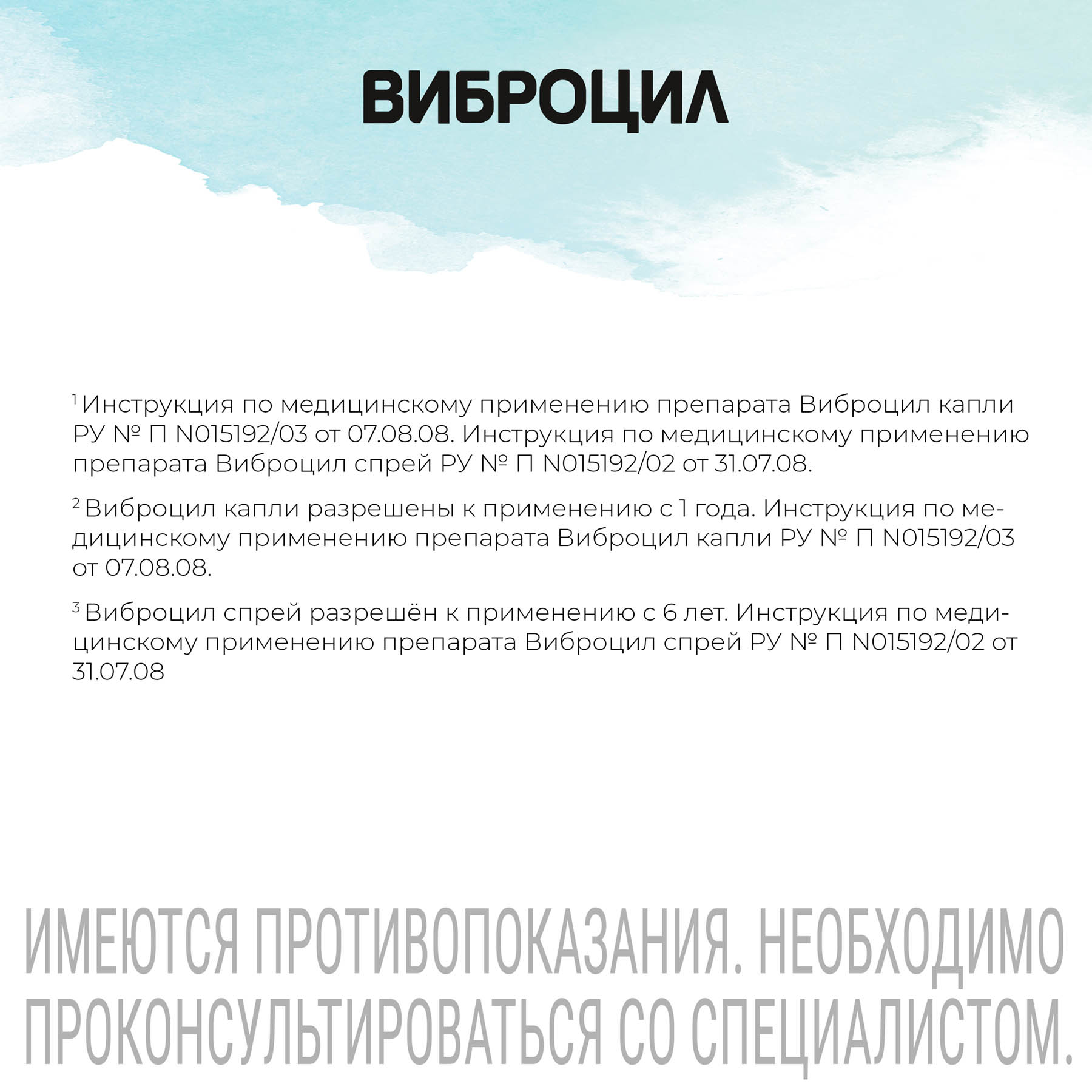 Лечение Виброцилом запрещено при индивидуальной непереносимости одного из активных или вспомогательных ингредиентов. К его противопоказаниям также относится атрофический ринит, для которого характерно истончение слизистых оболочек носа.