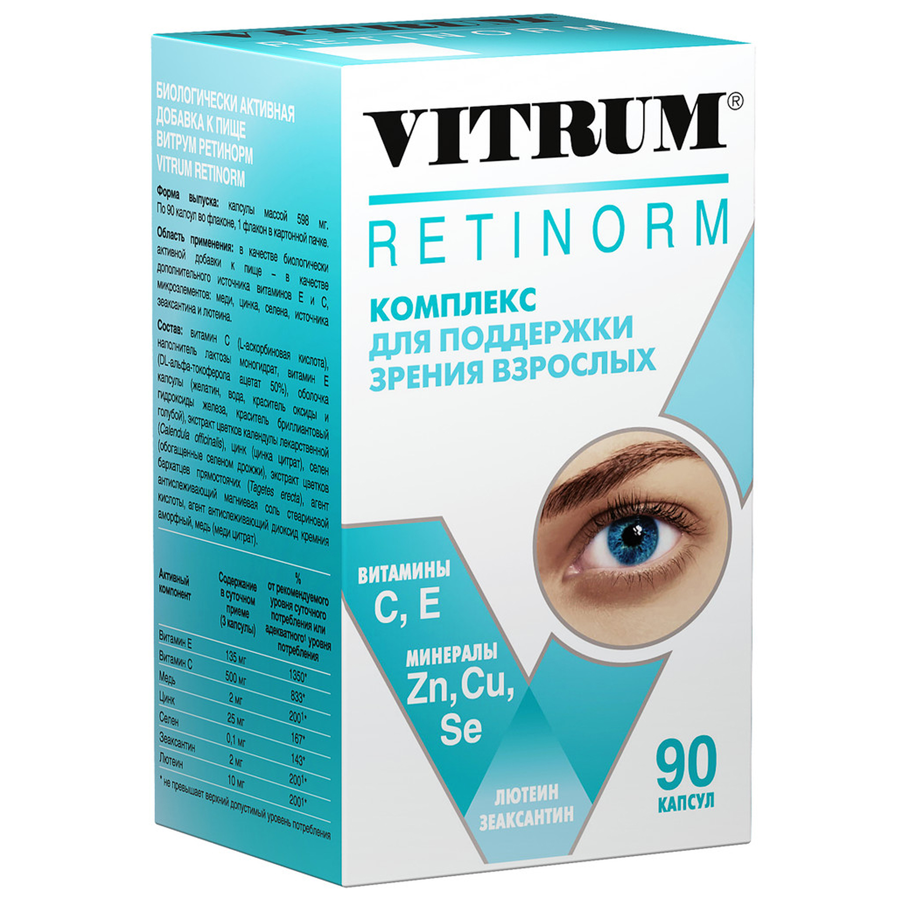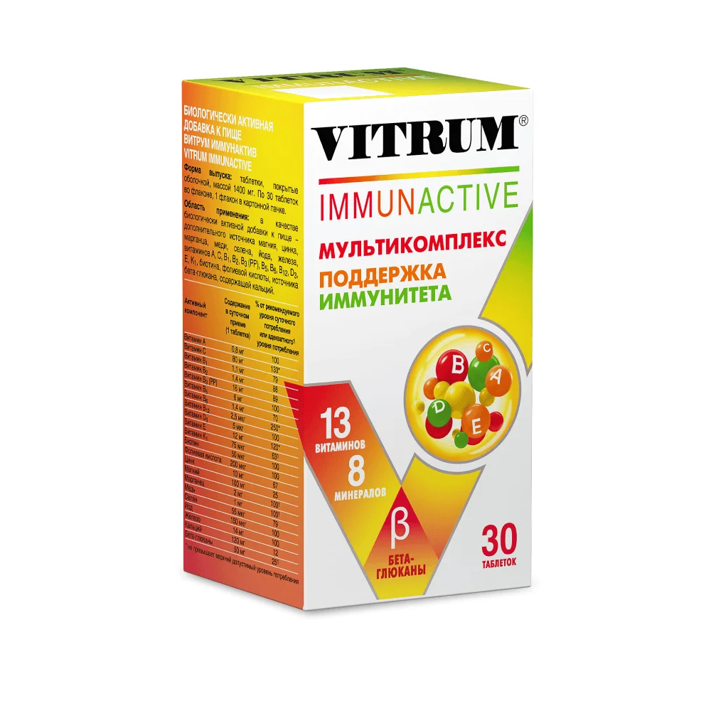 Витрум (Vitrum) – сбалансированный витаминно-минеральный комплекс, позволяющий восполнить запас полезных веществ и повысить иммунную защиту организма против бактерий и вирусов. Представлен широкой линейкой БАДов на разный возраст и в зависимости от потребностей. Выпускаются в виде капсул (Витрум Энерджи или Витрум Вижн), жевательных таблеток для детей (Витрум Kids) и прочее. Таблетки или капсулы расфасовывают в пластиковые флаконы по 30, 60, 100 штук (шт.) или в картонные упаковки по 1, 2, 4, 6 или 8 блистеров по 15 штук (шт.) в каждом.