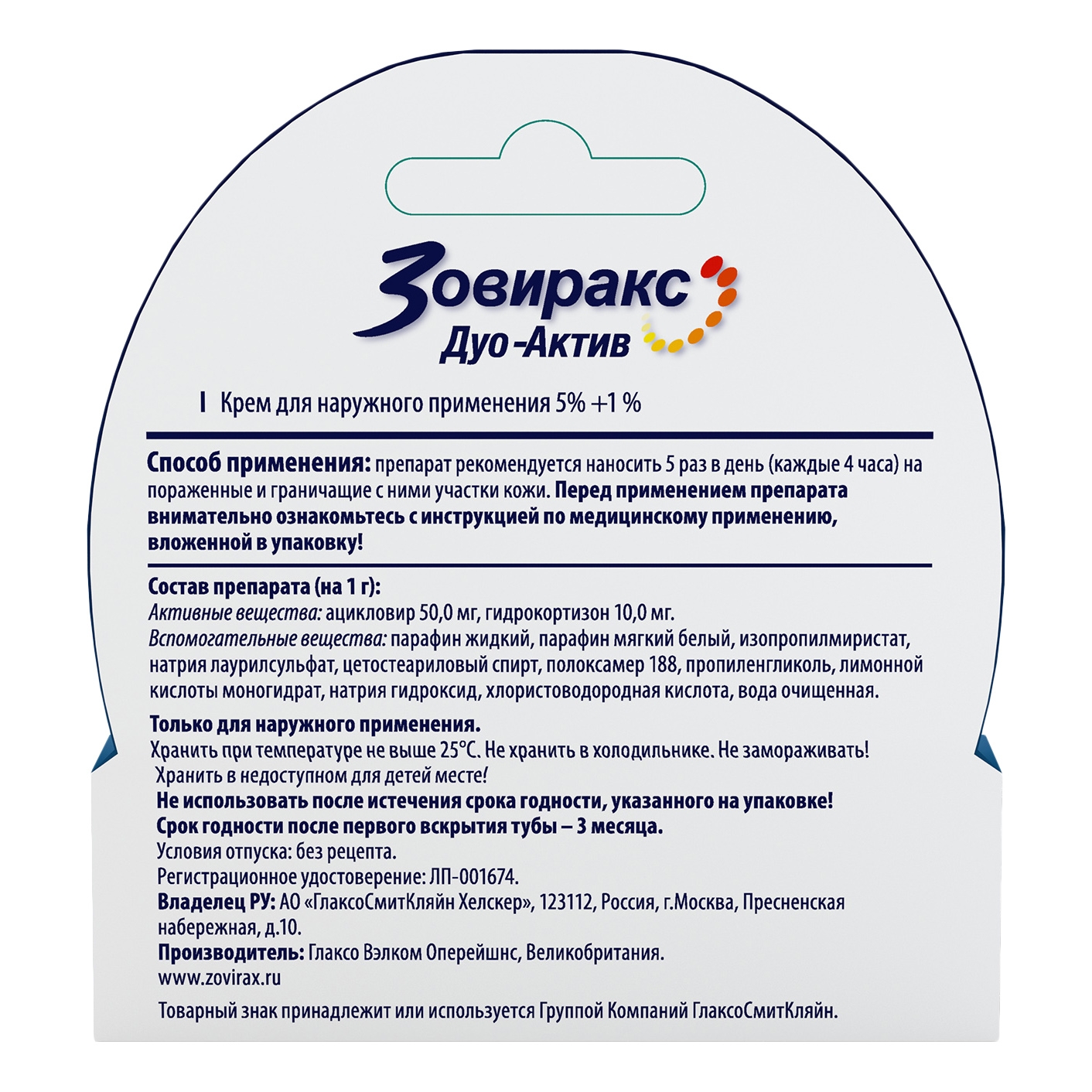 Зовиракс Дуо Актив крем для наружного применения 5% 2г